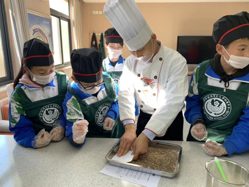 在学校学烹饪?这听起来似乎有点不可思议!但是,从这个学期开始,贸大附中初中部聘请了专业大厨走进校园带领同学们学做传统美食。