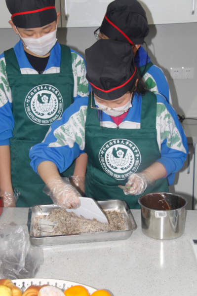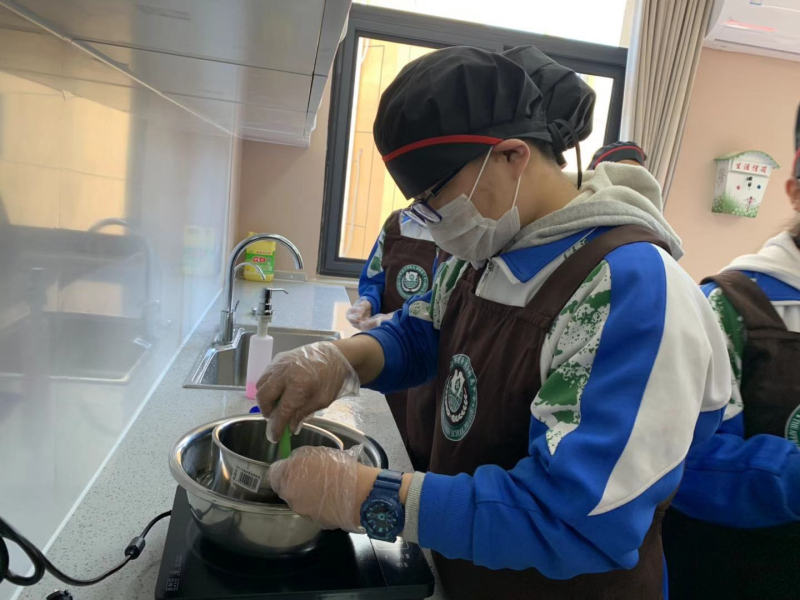 312日下午,贸大附中初中部情景教室里热闹非凡,原来,这是初一1班的同学在上劳动教育美食制作课,这堂课的内容是制作燕麦酥。搅拌,摊平,揉圆,烤熟,一个个形态各异的燕麦酥就做好了,同学们在劳动教育课上不仅尝到了亲手制作的劳动果实,还感受到了劳动真正的快乐。课程除了制作,品尝外还包括了课后器具整理及卫生清理,学生在体验美食之余还能学到家政劳动的本领,感知父母的不易。