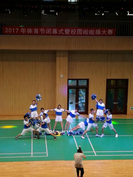为丰富学生的校园文化生活,不断提高同学们的综合素质,营造和谐向上的校园文化氛围。我校自2008年起,形成了在体育节中开展校园啦啦操比赛的传统,啦啦操大赛成为体育节中最大的亮点。田径场、形体房、楼道里……随处都能看到她们练习的身影,在校园里掀起一股啦啦操热潮。