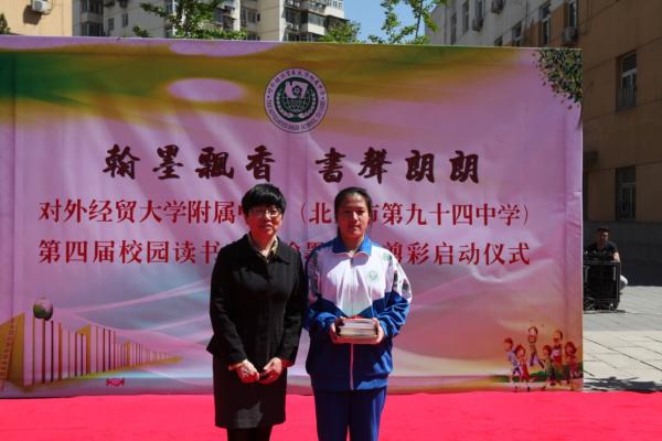 在2017年世界读书日来临之际,我校迎来了第四届读书节,继著名儿童文学作家曹文轩先生莅临我校主讲“阅读与写作”公开课,4月24日学校初中部举行了“国旗下读书”暨“翰墨书屋”剪彩仪式。参加活动的嘉宾有对外经济贸易大学基础教育协作办公室主任王丽娟、对外经济贸易大学附属中学校长刘国雄等校领导。对外经济贸易大学全力支持学校营造书香校园,捐赠图书近千本,王丽娟主任以个人名义捐赠百余本图书。