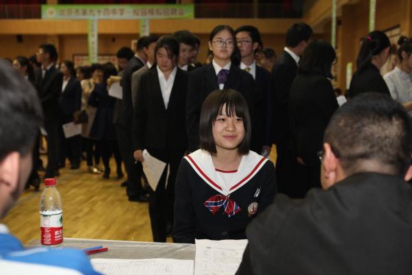 2017年4月18日,对外经济贸易大学附属中学高一年级”遇见未来的自己”校园模拟招聘会圆满落幕。校园招聘会采用社会招聘的形式,旨在为学生提供一个近距离接触行业精英的平台,使同学全方位地了解招聘的相关知识、技巧,并提供一个实际展现自我的舞台。招聘会的面试官是来自可口可乐、万科、华夏银行等20个不同领域不同公司的专业HR。参加活动的292名高一学生,有260多名学生顺利通过面试,被各大名企“录用”。此外,学校还邀请部分家长前来观摩。