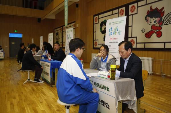 2017年3月21日,对外经济贸易大学附属中学邀请20家高端企业来校,面对高二学生开展了一场“模拟招聘会”。此次招聘会旨在帮助学生明确自身定位,激发学习原动力,更好地规划未来的学习生活。