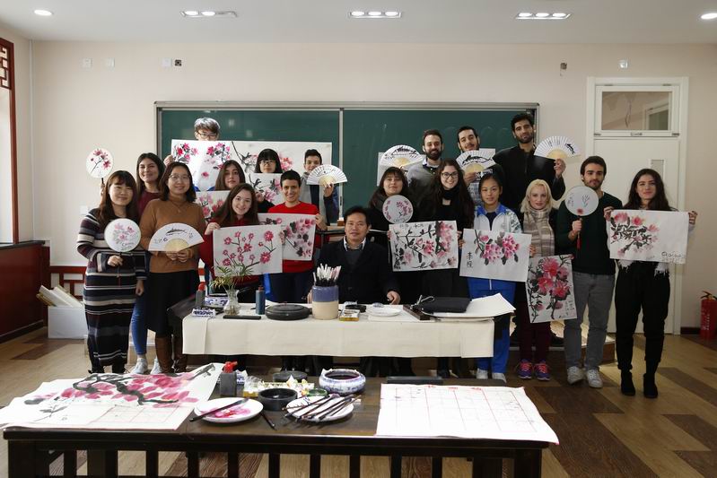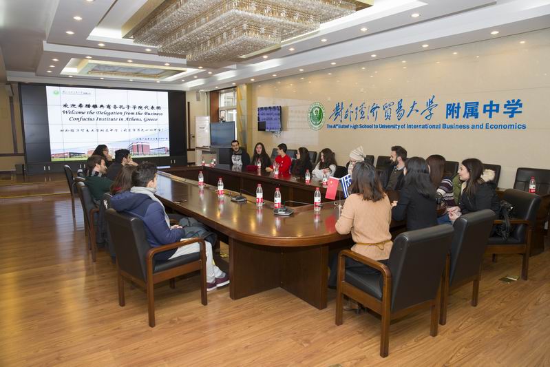 12月28日,希腊雅典商务孔院来华文化体验冬令营学员再次来到对外经济贸易大学附属中学参观学习。此次孔院访问团由在希腊雅典商务孔院学习的中学生、大学生以及医生、律师等14名学员组成,学校体验活动旨在进一步推进汉语文化交流,提高学员学习汉语的兴趣和汉语言文化水平。徐卫书记代表学校对学员表示热烈欢迎,赞扬了学员们学习汉语的热情,鼓励学员们积极参与文化体验,感受中国汉字、书画的艺术之美。全体学员观摩了附中学生冬季跑操活动,参观了音乐、美术专用教室以及理化生高端专业实验室。在书画老师指导下,附中学生志愿者的帮助下,亲身体验中国书画的魅力,完成一幅幅象征幸福吉祥的中国牡丹,共迎新年。