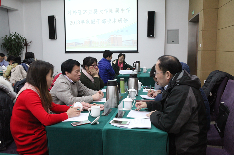 围绕当前教育改革新形势、新任务及工作重点,为切实增强干部应对新形势、解决新问题、克服新困难的能力,尽早实现学校“京城一流 国际知名”的发展目标。2018年1月26、27日,贸大附中初高中及新城分校寒假“练兵”,共同开展干部研修,通过校际联动、集中培训、头脑风暴、分组研讨、重点解析,干部深度反思2017年整体工作,研讨绘制2018年工作蓝图,为赢战2018年中高考奠基。