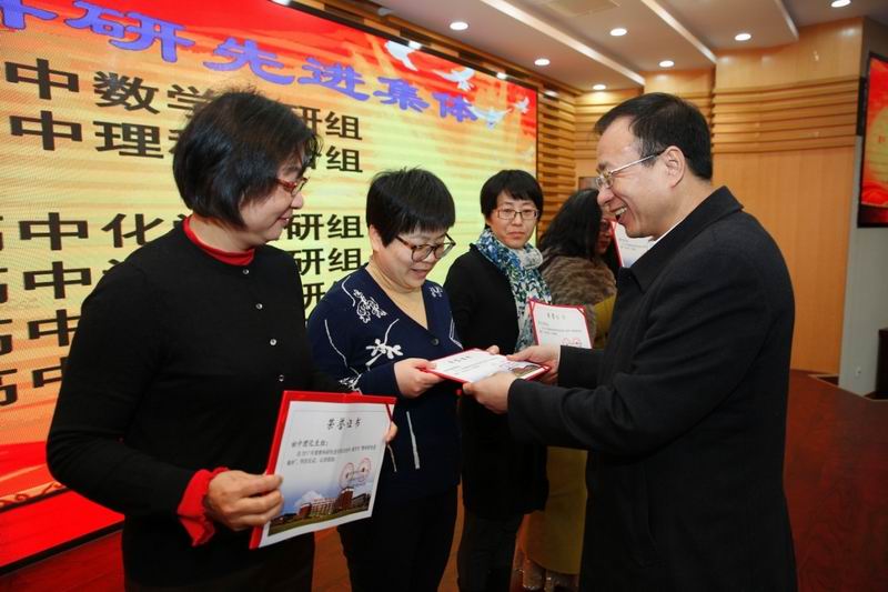 党总支副书记副校长石淳、工会主席侯爽为教科研先进个人颁发证书
