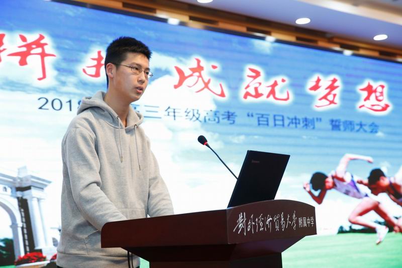 为进一步激发高三师生高考备考热情、增强责任和使命担当意识,2月27日,在贸大附中学子高亢洪亮的国歌声中,“拼搏成就梦想”—— 2018届高三年级高考百日誓师拉开帷幕。校长兼党总支书记刘国雄校长、副书记副校长石淳、工会主席侯爽、副校长杨艳等校领导及家长代表出席仪式,并与高三全体学生、班主任一起观看“不一样的高三,不一样的梦想”专题片。