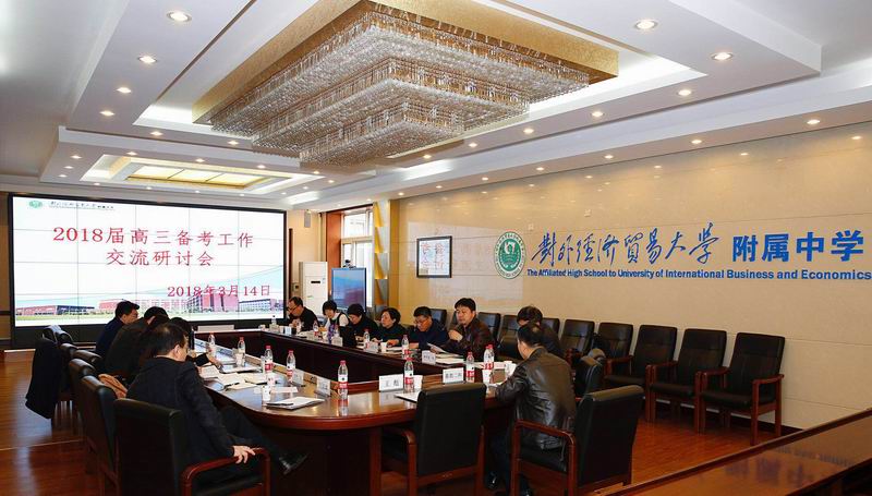 3月14日,朝阳区2018届高三备考管理交流研讨会(第三组)在贸大附中高中部召开,基教二科副科长李克明及贸大附中、和平街一中等8所高中校的高三主管领导参加会议。
