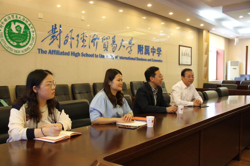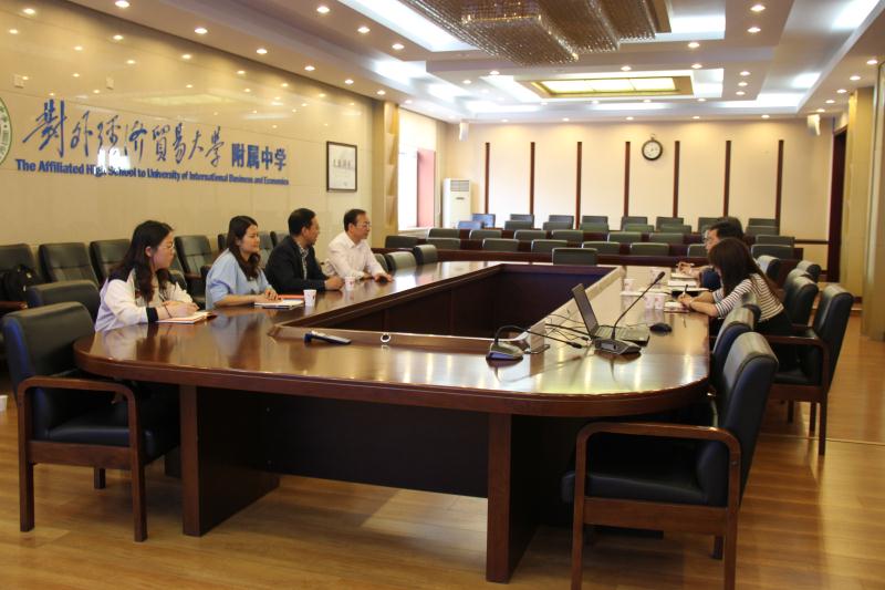 2018年4月27日,对外经济贸易大学附属中学与首都师范大学中国语言智能研究中心联合召开人工智能与基础教育融合研讨会。语言智能研究中心副主任、博士生导师史金生教授,副研究员刘双娜女士,对外经济贸易大学附属中学校长刘国雄、部分校级领导及教研组长出席会议。