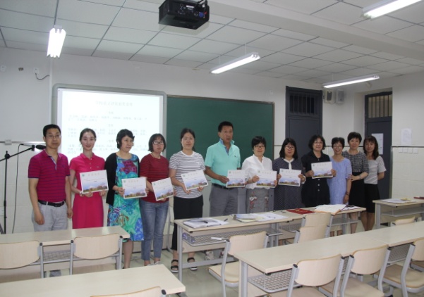 党课学习前初中行政领导给“活力课堂”获奖教师颁奖