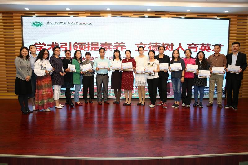 (贸大基础教育协作办公室王丽娟主任为获奖教师颁奖)