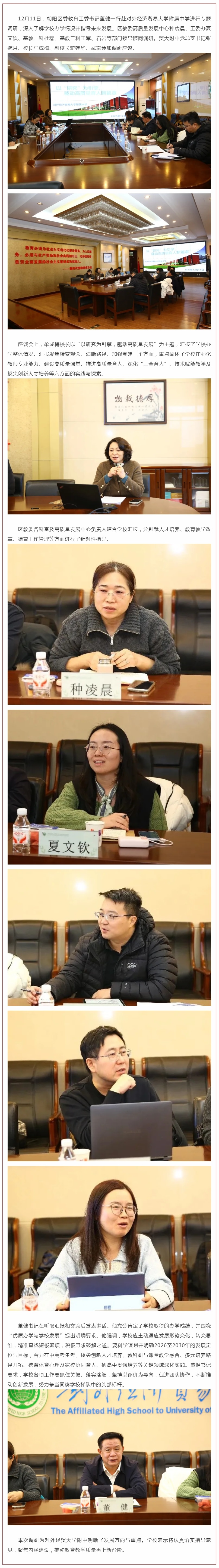 朝阳区委教育工委书记董健深入贸大附中调研