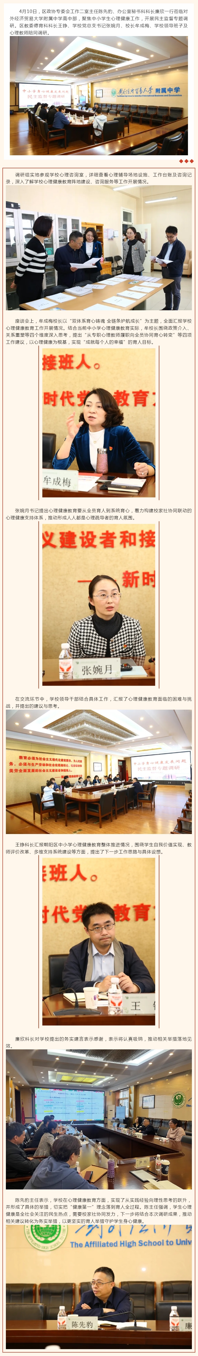 区政协领导莅临对外经济贸易大学附属中学专题调研青少年心理健康工作