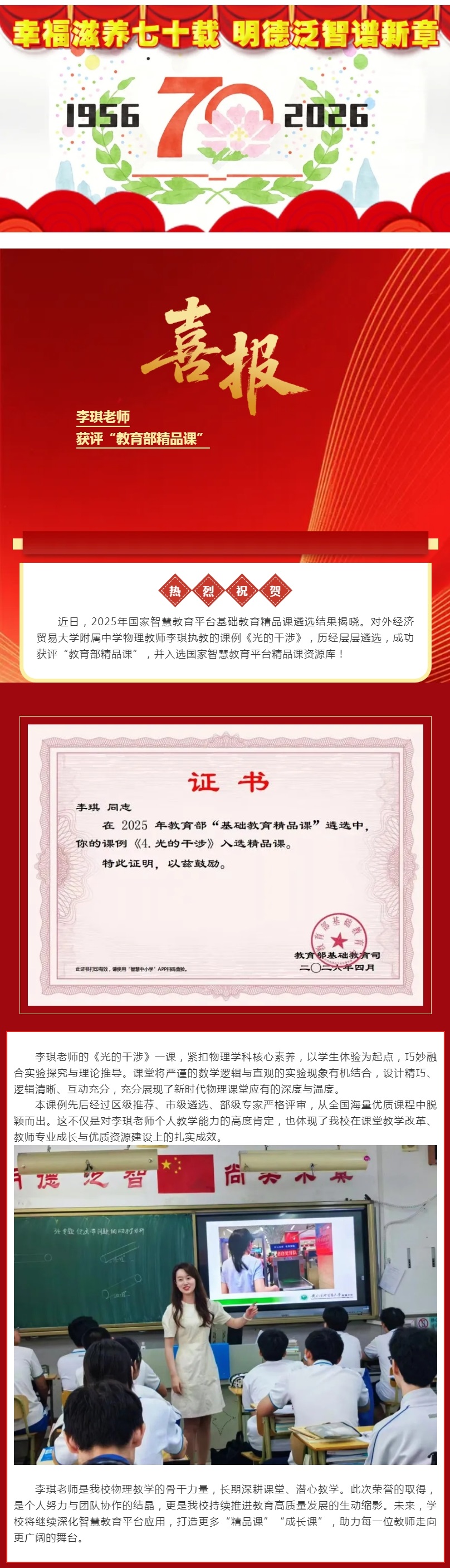 【七十华章·探索未来】匠心深耕结硕果,精品课堂绽芳华!贸大附中李琪老师课例获评“教育部精品课”