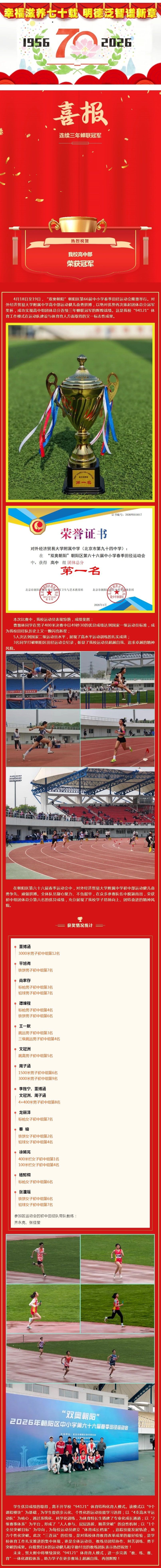 【七十华章·对话生长】贸大附中高中部蝉联朝阳区第66届中小学春季田径运动会冠军——“94121”体育育人模式再结硕果